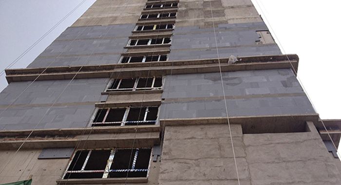 4、施工簡(jiǎn)潔、體系整體性好,石墨聚苯板外保溫體系施工與EPS薄抹灰外墻外保溫體系施工辦法一致,有較高的體系整體性及耐久性。
