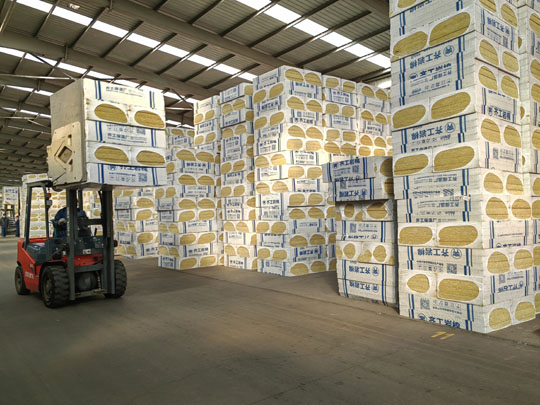 齊工巖棉板是以玄武巖為主要原材料,經過沖天爐高于1450℃使原材料充分熔化,經過高速離心機甩絲,形成巖棉纖維,用高速鼓風機使其噴吹冷卻成型,在噴吹過程中添加一定比例的高效粘合劑,由大型擺錘設備呈三維布棉狀態均勻鋪棉,由履帶將布好的巖棉傳送至壓力設備中,使其形成一定密度的巖棉板,后經高溫烘干爐烘干后,送至冷卻出風口使其冷卻固化,切割不同規格的成品。